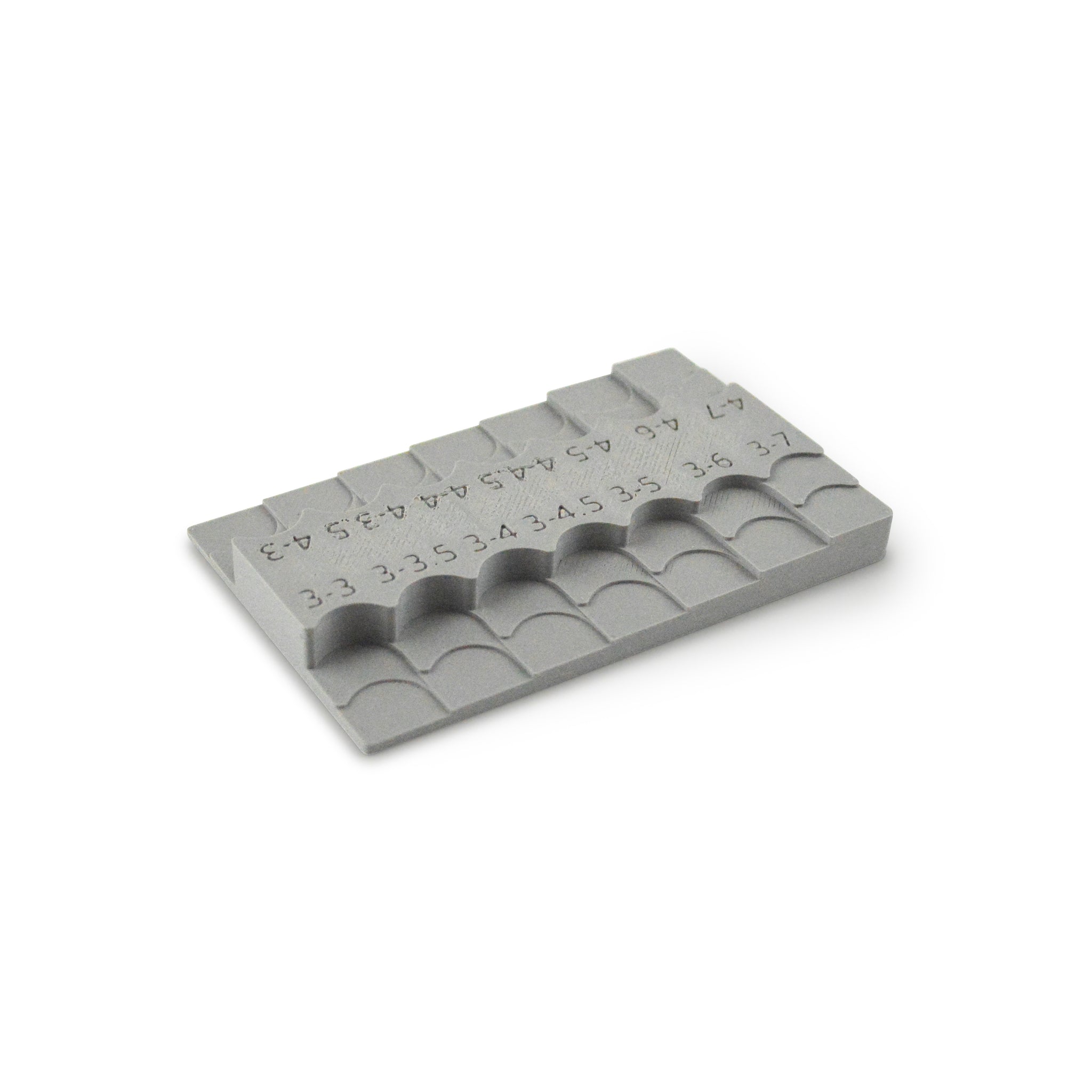 Use this handy gauge to double check the gap measurement on your squeezer, before setting rivets. Each slot is labeled by rivet size.